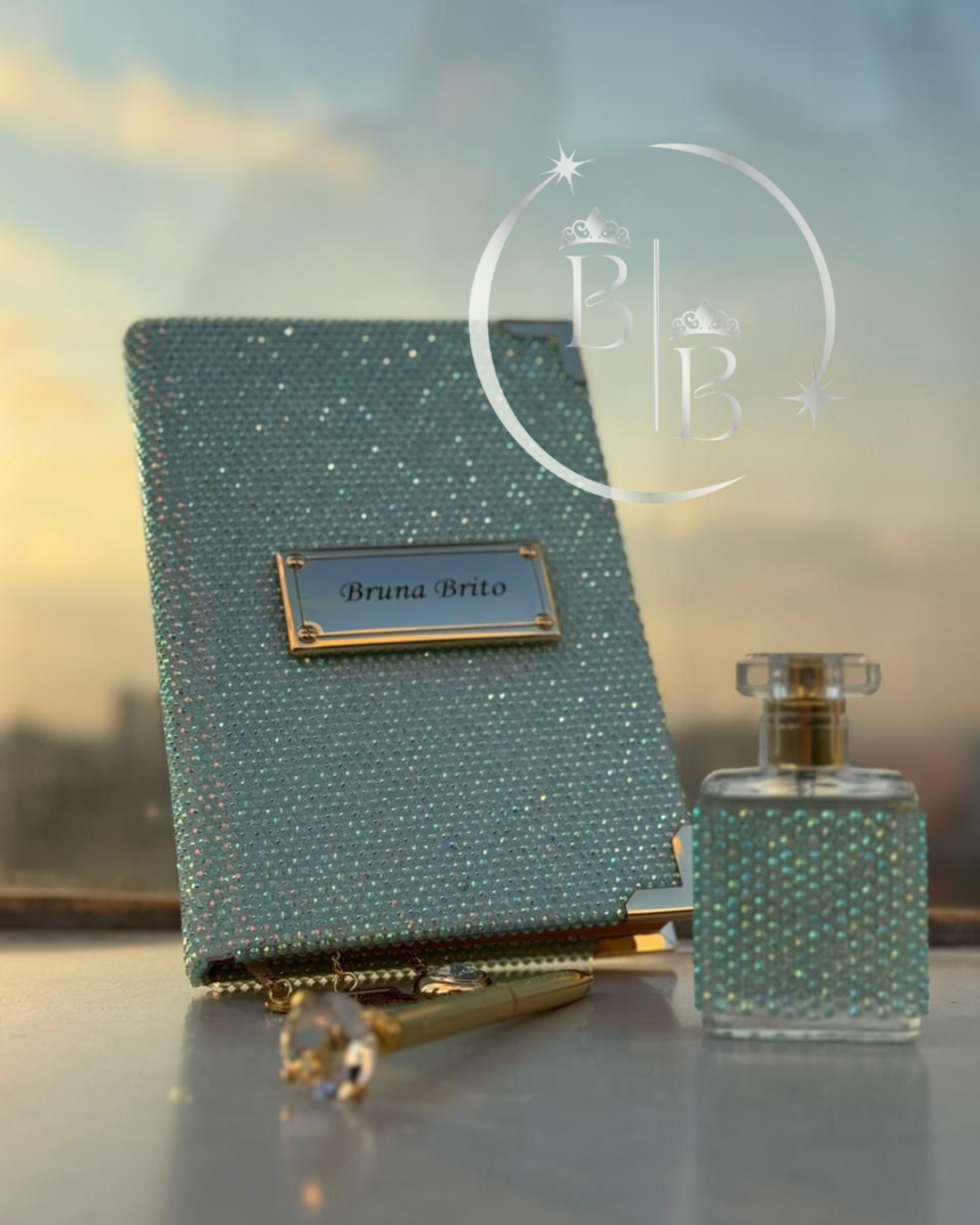 1 Bíblia Sagrada personalizada com nome gravado na plaquinha (dourada ou prata) com Capa em manta de pedrarias, feita à mão com brilho e elegância